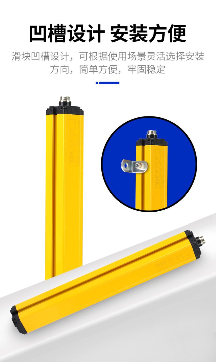 信號電纜:連接控制器和設備的控制單元,當光幕傳輸信號時,用以實現(xiàn)設備的停止或報警 ;